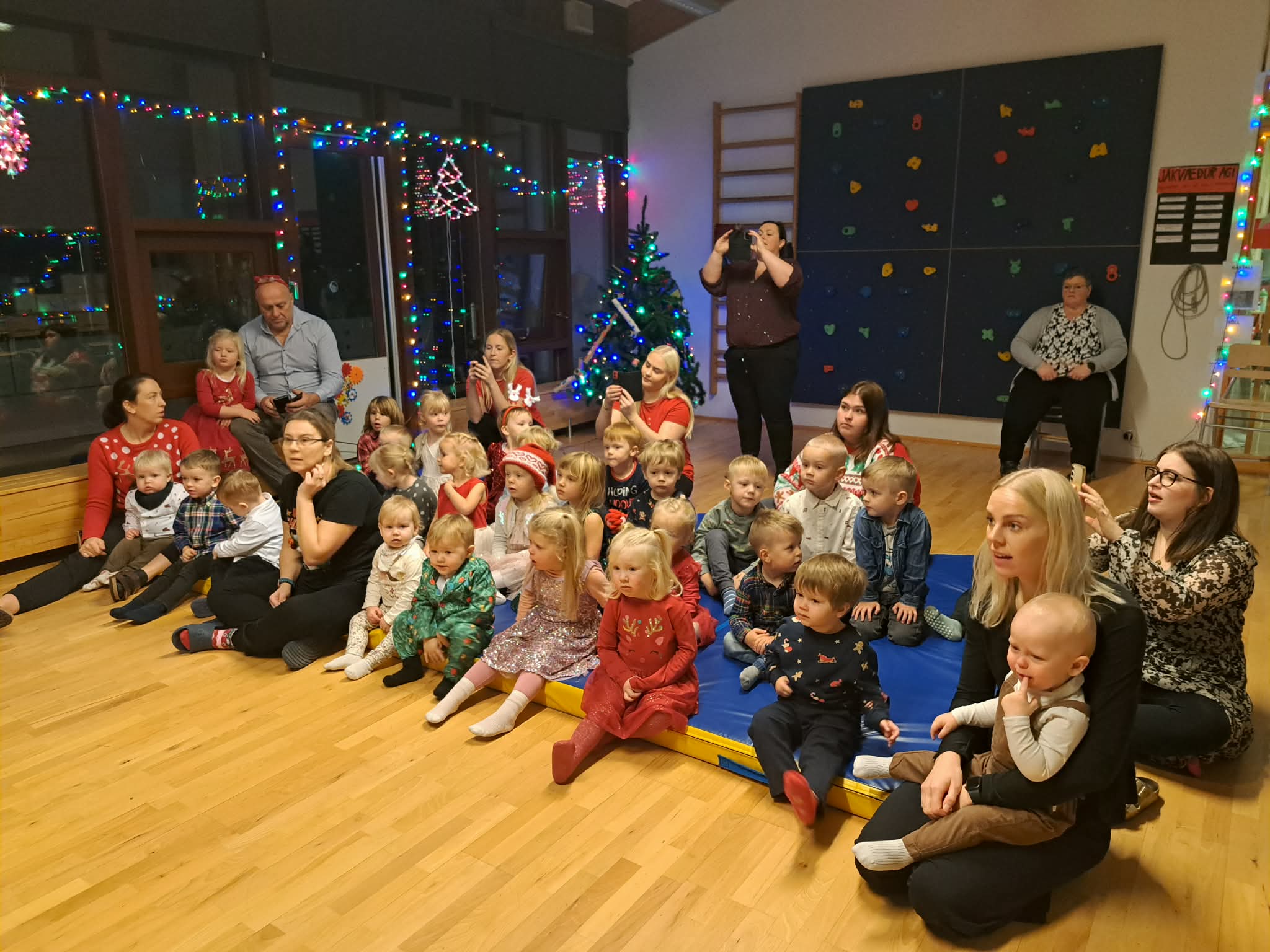Jólaballið er einn af okkur föstu liðum í undirbúningi jólanna og það fylgir því alltaf mikil gleði að dansa í kringum jólatré, syngja gömlu góðu jólalögin og ekki síst að sjá viðbrögð barnanna við því þegar jólasveinarnir koma í heimsókn. Mörg barnanna voru að sjá jólasvein í fyrsta sinn og augljóst að spennan var mikil, en öll gengu þau til sveinka og fengu afhenta gjöf merkta sér og gleðin leyndi sér ekki.